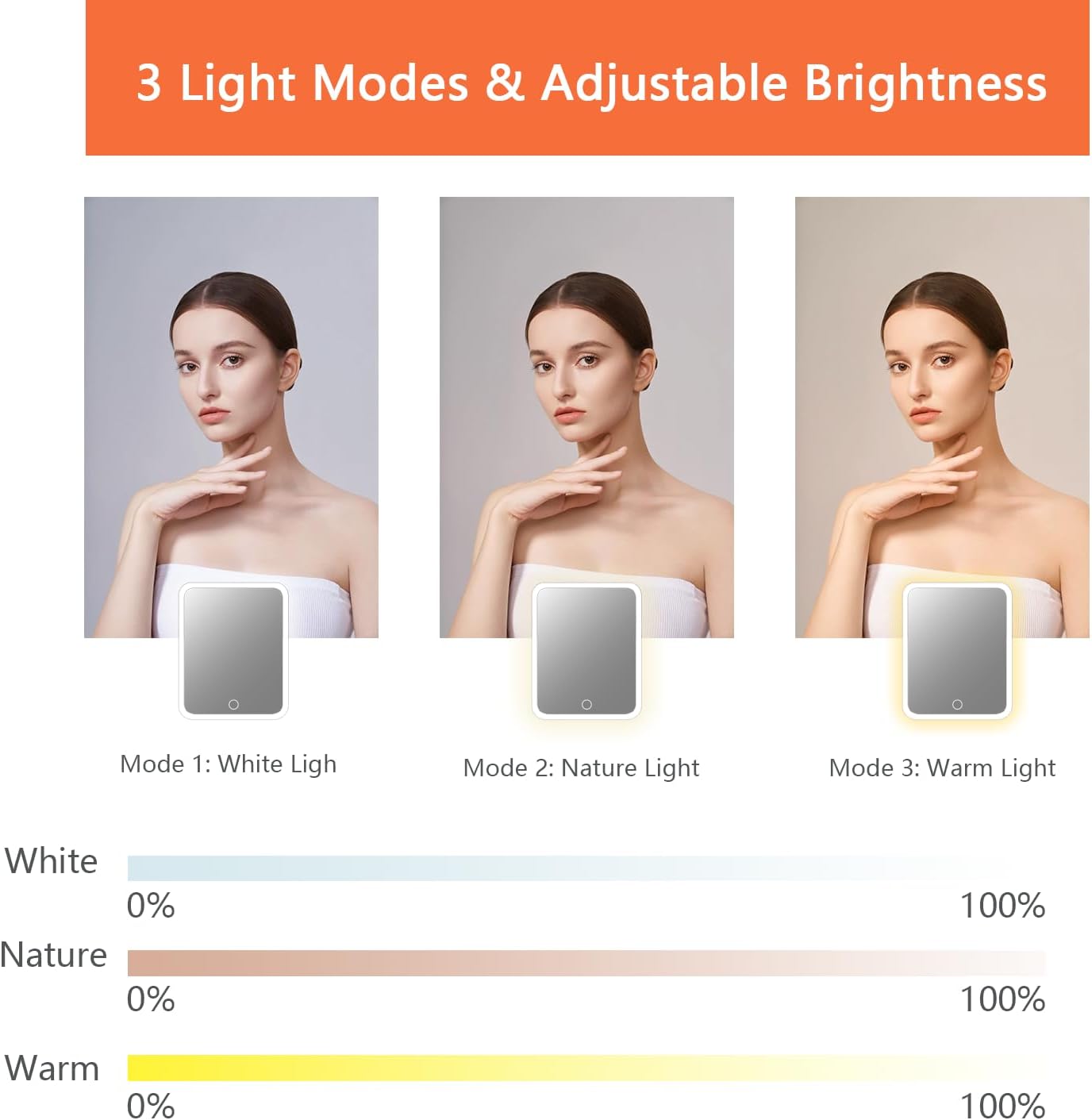 - 【makeup bag with led mirror】travel makeup bag is made of pu leather, waterproof and resistant, easy to clean.the travel makeup bag with of led light 3 color setting. 0-100% adjustable brightness that can be switched. with a long press on the switch, and a short press can adjust the color temperature between cool, natural and warm light.the make up bag can protect your cosmetics well, whether you are traveling or be away on official business, you can take your dresser everywhere.