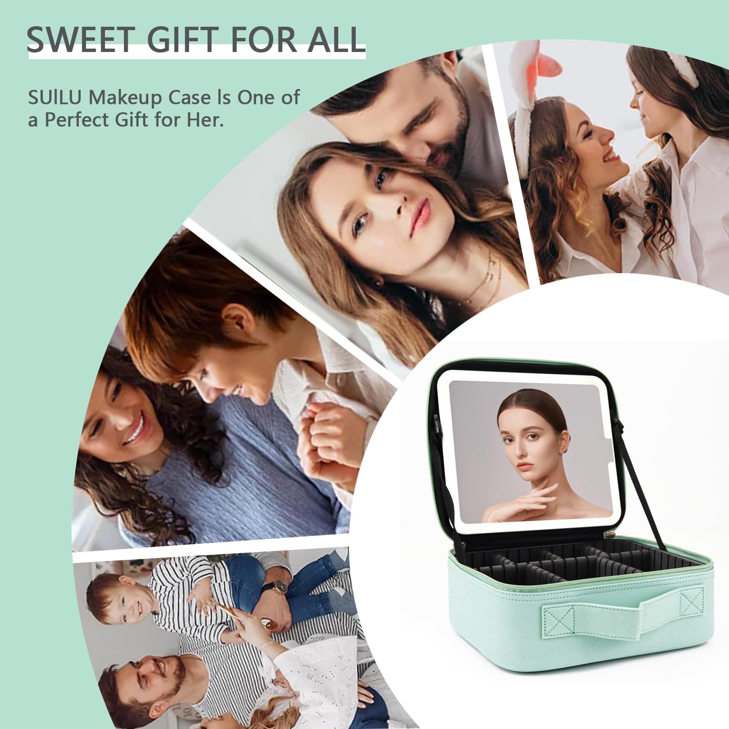 - 【ideal perfect gift】SUILU makeup bag with led mirror is the perfect gift for your wife, girl friend, mother, makeup lovers in any special days, such as mother's day, birthdays, valentine's day, halloween, anniversaries, christmas and more.it is not only storage your cosmetics, but also jewelry, electronic accessories, camera, essential oil, toiletries, shaving kit, valuable objects and so on.a must-have for your travels.