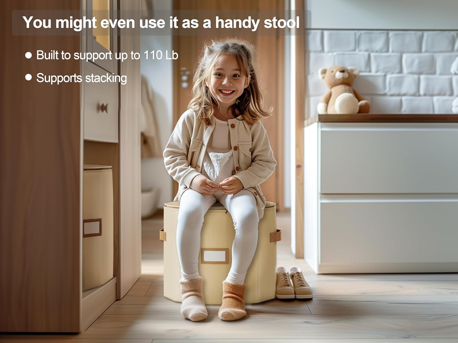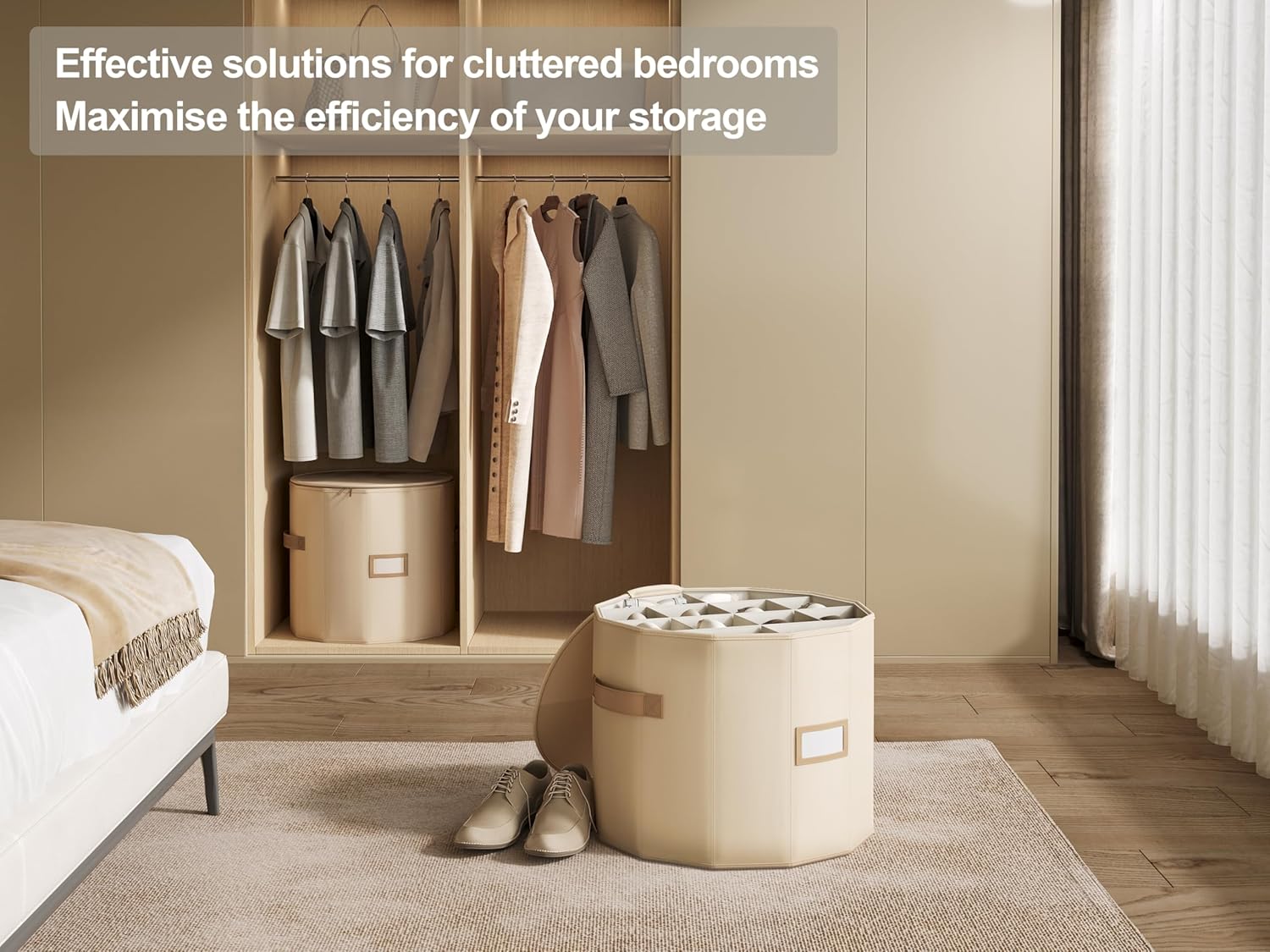 Vailando Shoe Organizer for Closet - Cylindrical Shoe Storage Organizer with Adjustable Dividers for Closet, Foldable Shoe Storage Box, Beige, 2-Pack, Large