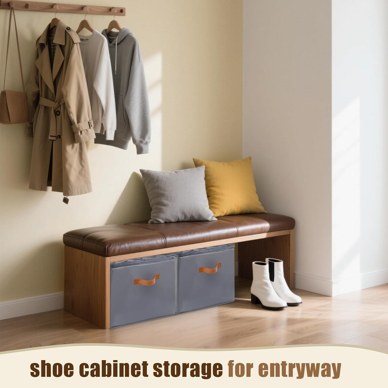 - Extra-large storage capacity: Measuring 16.54” long × 16.54” wide × 10.79” high, this shoe storage basket can hold up to 16 pairs of shoes. It is suitable for bedrooms, small closets, entryways, attics, basements, dorm rooms, walk-in closets, garages, closets, RV, shelves, and wardrobes.