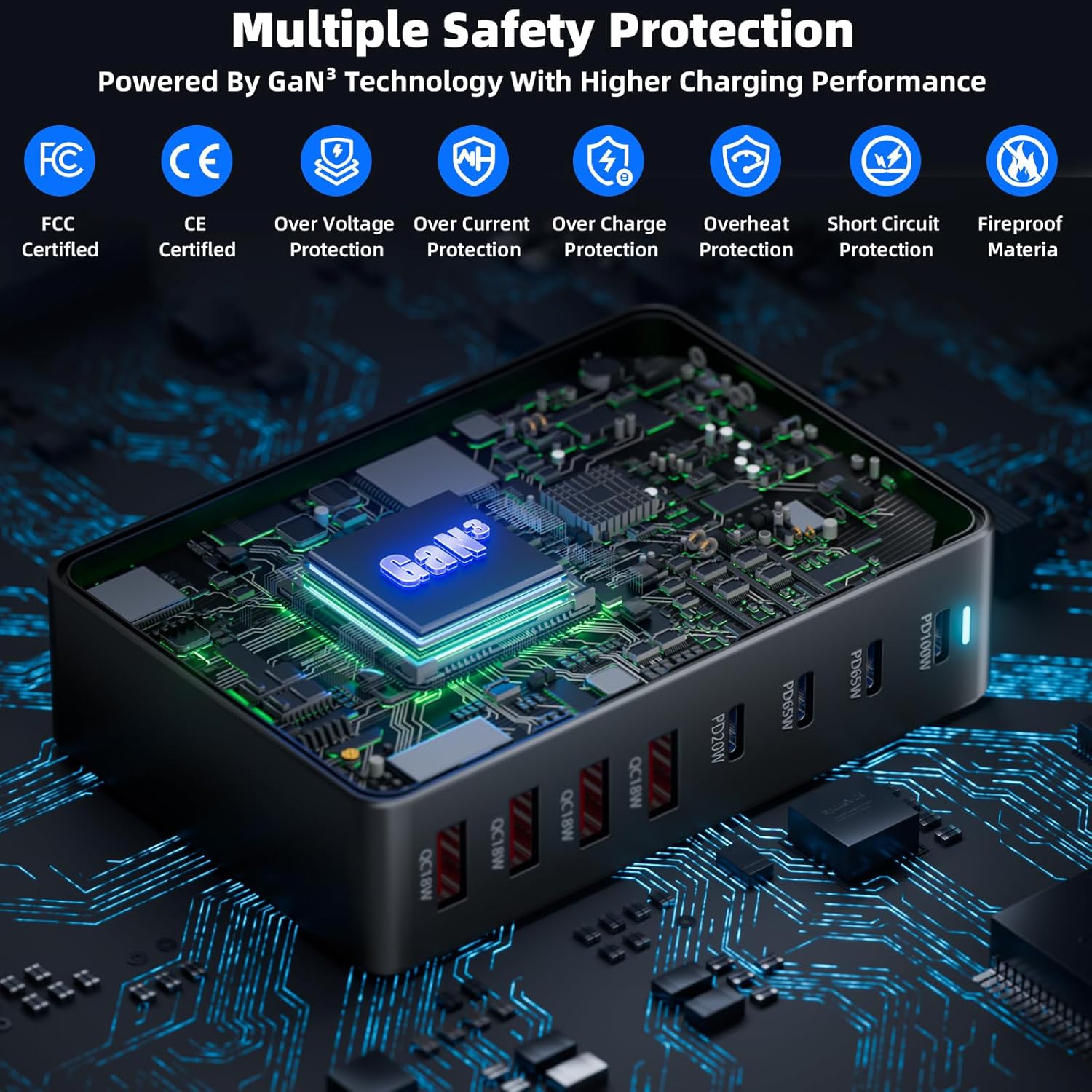 - Durable and Reliable Design: The charging station is built with a strong ABS+PC shell for durability, and its fireproof material offers additional protection, ensuring the charger will last for years. With an LED indicator light, you can easily monitor the charging status of all connected devices at a glance.