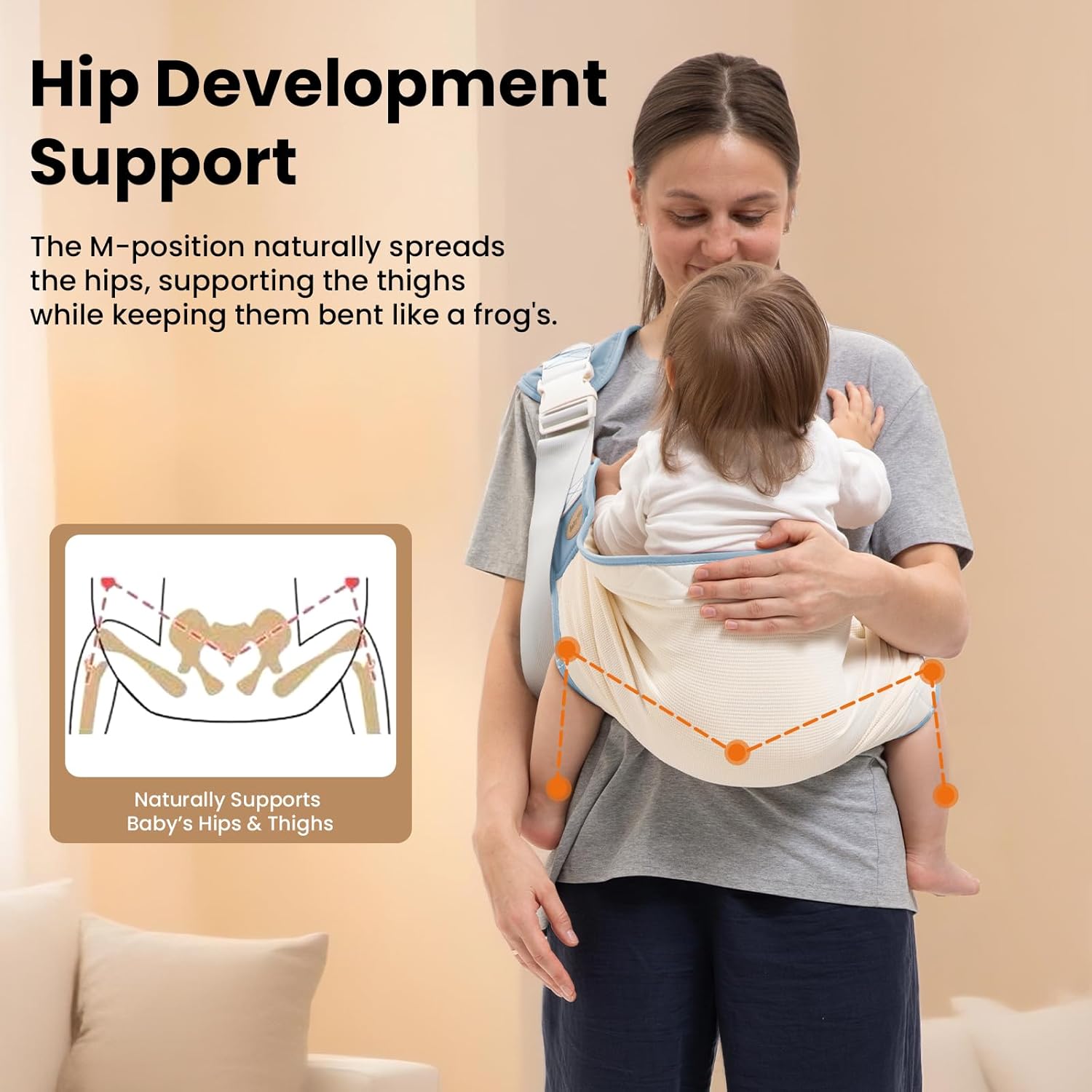 - 【Adjustable & Ergonomic Fit】This toddler sling carrier features dual front and back adjustable straps, offering a perfect fit for all body types, including plus-size parents. Its ergonomic M-shaped seat supports healthy hip development, making it ideal for long-term use from newborn to toddler.