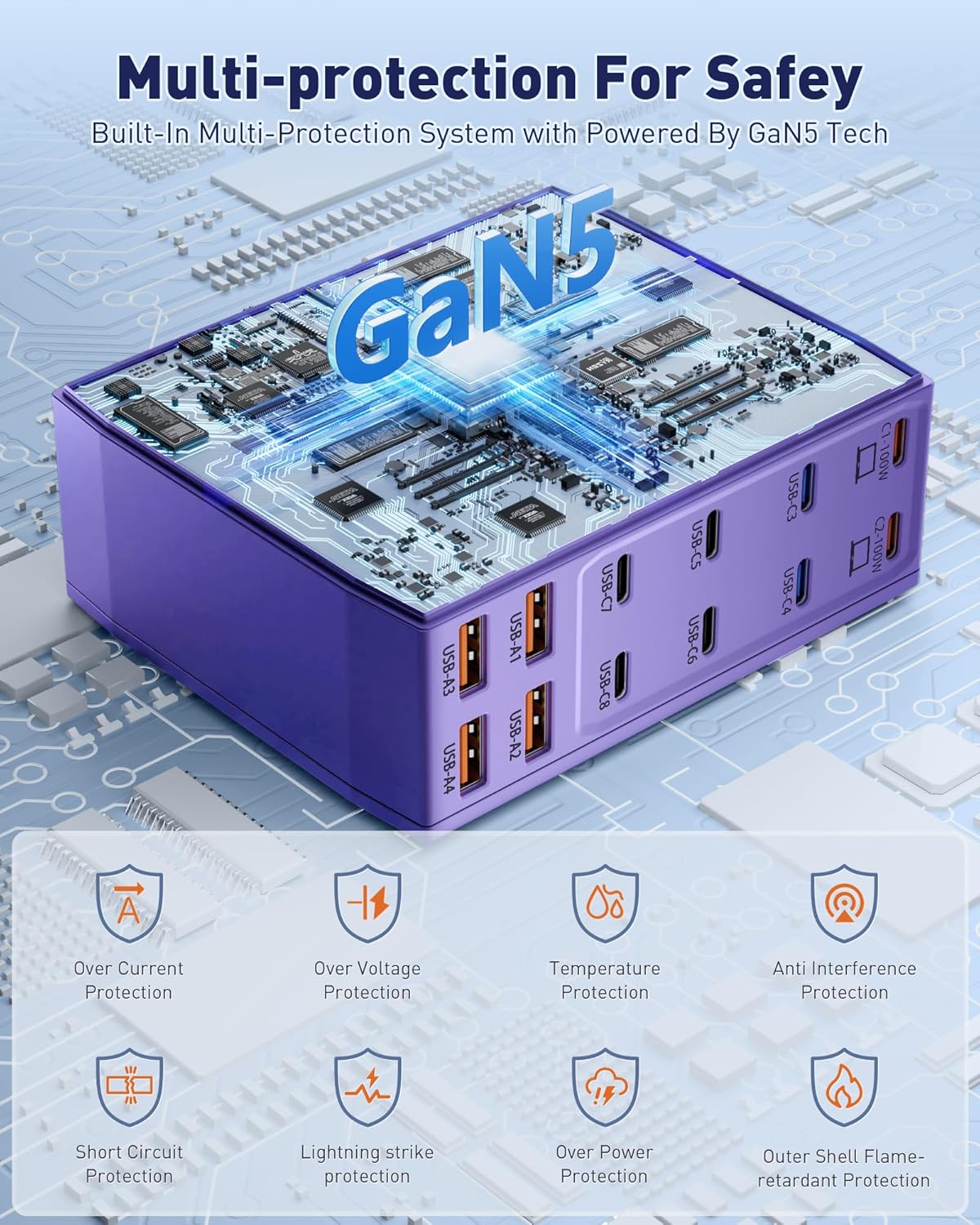 - ăSuper-Fast GaNâ € USB C ChargerăSAIPKYGS USB C Charger Block adopts GaNâ € generation chip technology, which has stronger radiation resistance, longer service life, upgraded heat dissipation performance, faster and safer charging, and no reduction in power consumption. Built-in multiple safety protection measures and intelligent control IC can prevent overcharging, overheating, short circuit, overcurrent and overvoltage to ensure the safety of your devices.