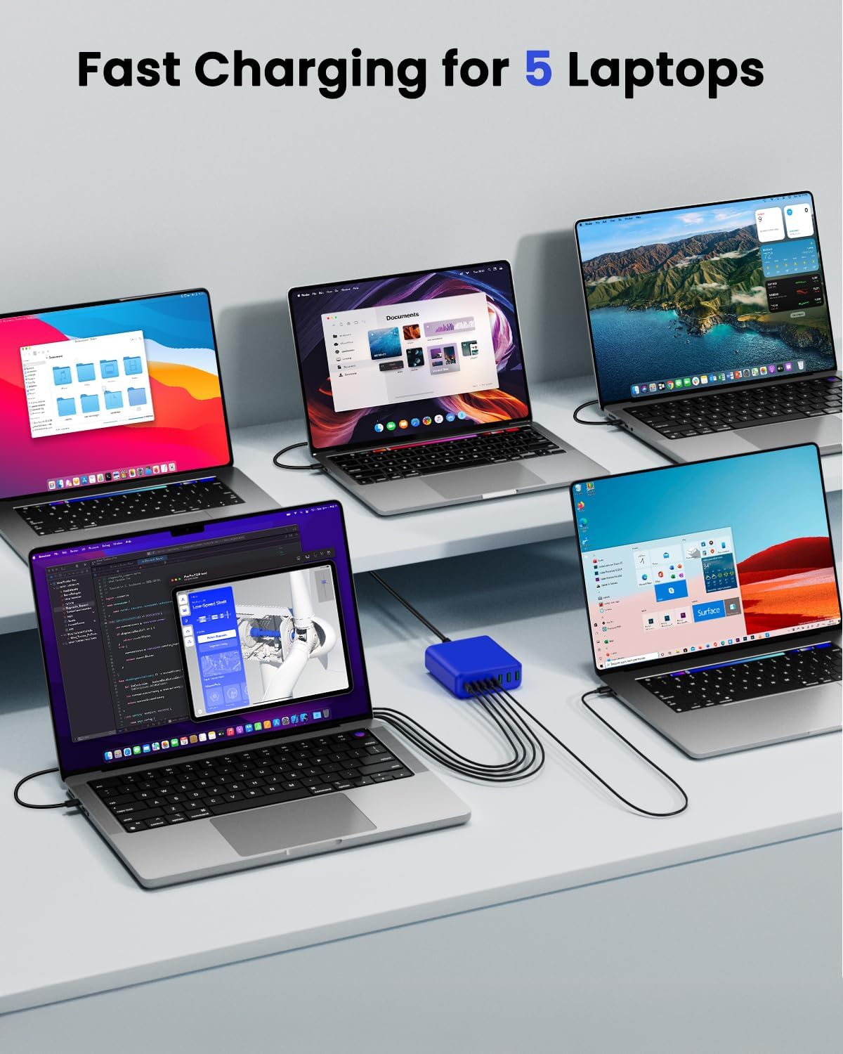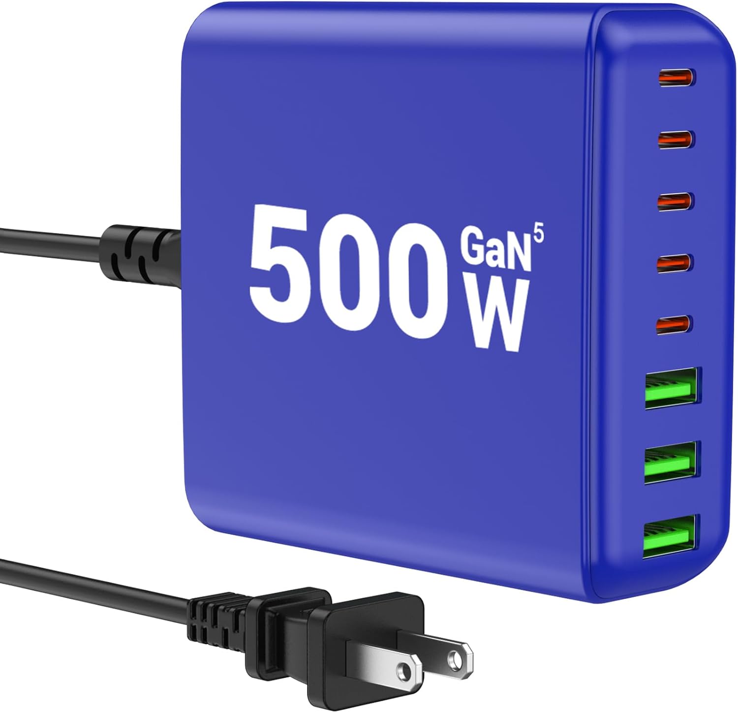 - 【Super Fast 500W Output USB C Charger】: Experience the convenience of super fast and ultra-high output charging with this 500W desktop charger, featuring 5 USB-C and 3 USB-A ports to power up your essentials simultaneously. No need for more adapters, you can use just one outlet to plug in laptops, tablets, smartphones, Bluetooth speakers and other small gadgets like earbuds, smartwatches, game consoles etc.