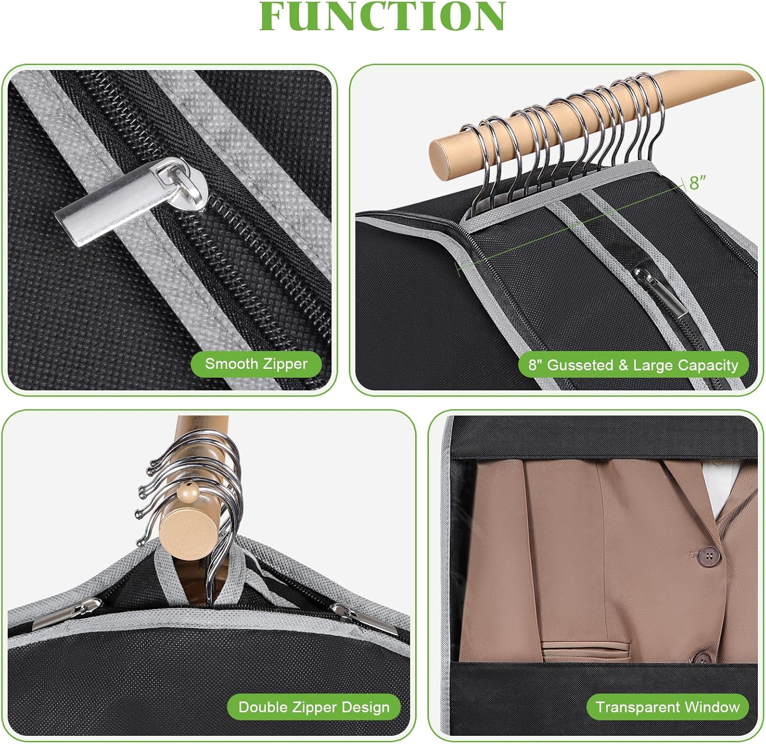 - Upgraded Compressible Garment Bag: Our hanging garment bag features a double-layer self compression zipper design. Just zip it up and press to reduce the thickness by 50%, maximizing closet space effortlessly and keeping it organized.
