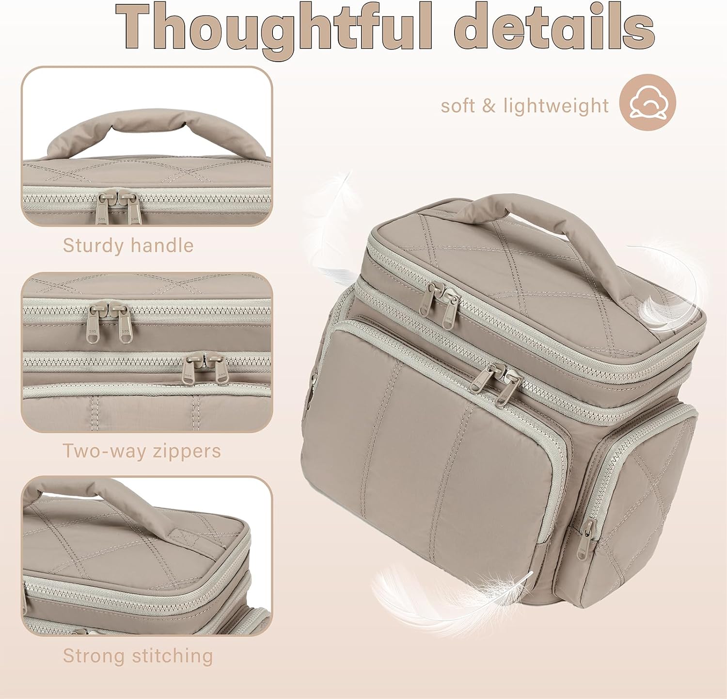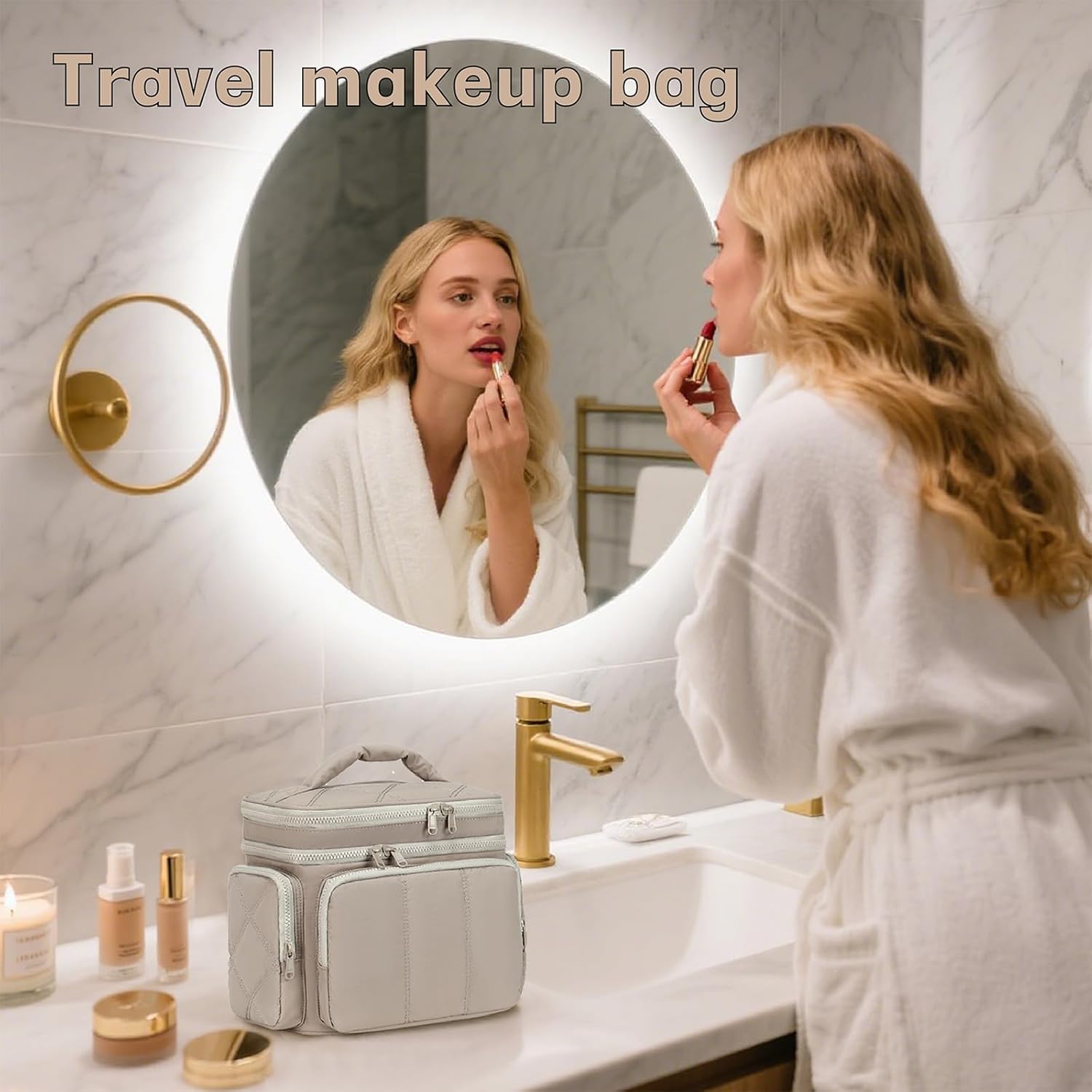 - Soft Puffy Materials: Toiletries travel bag is made of puffer fabric, weighs only 1.1lbs.Portable and lightweight makeup bags design make the makeup travel bag easily fit into your luggage and easy to carry. Makeup anytime, anywhere.