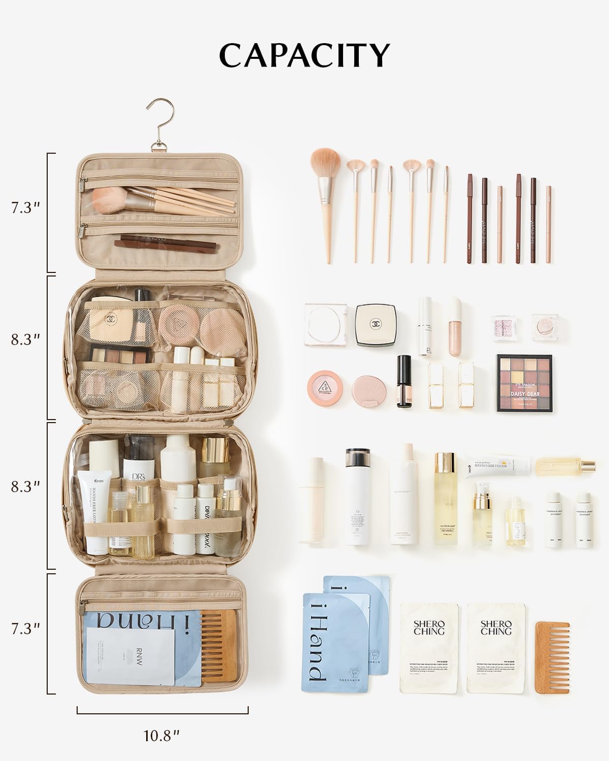 - Generous Capacity:Measuring 11.1" × 3.7" × 7.9", this toiletry bag offers 4 functional compartments to neatly store skincare bottles, brushes, and other travel essentials.