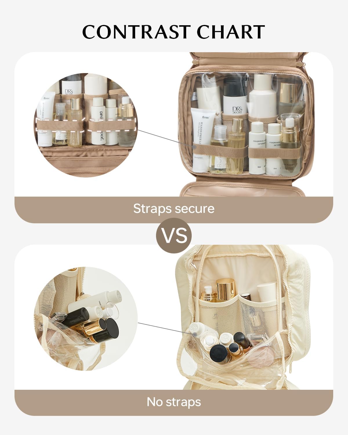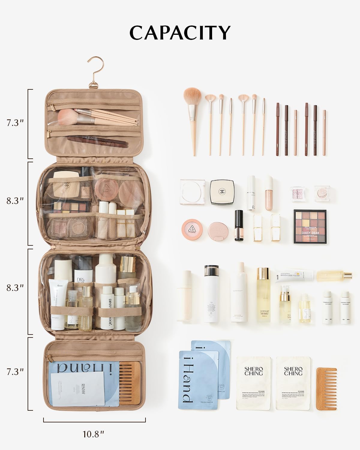- Generous Capacity:Measuring 11.1" × 3.7" × 7.9", this toiletry bag offers 4 functional compartments to neatly store skincare bottles, brushes, and other travel essentials.