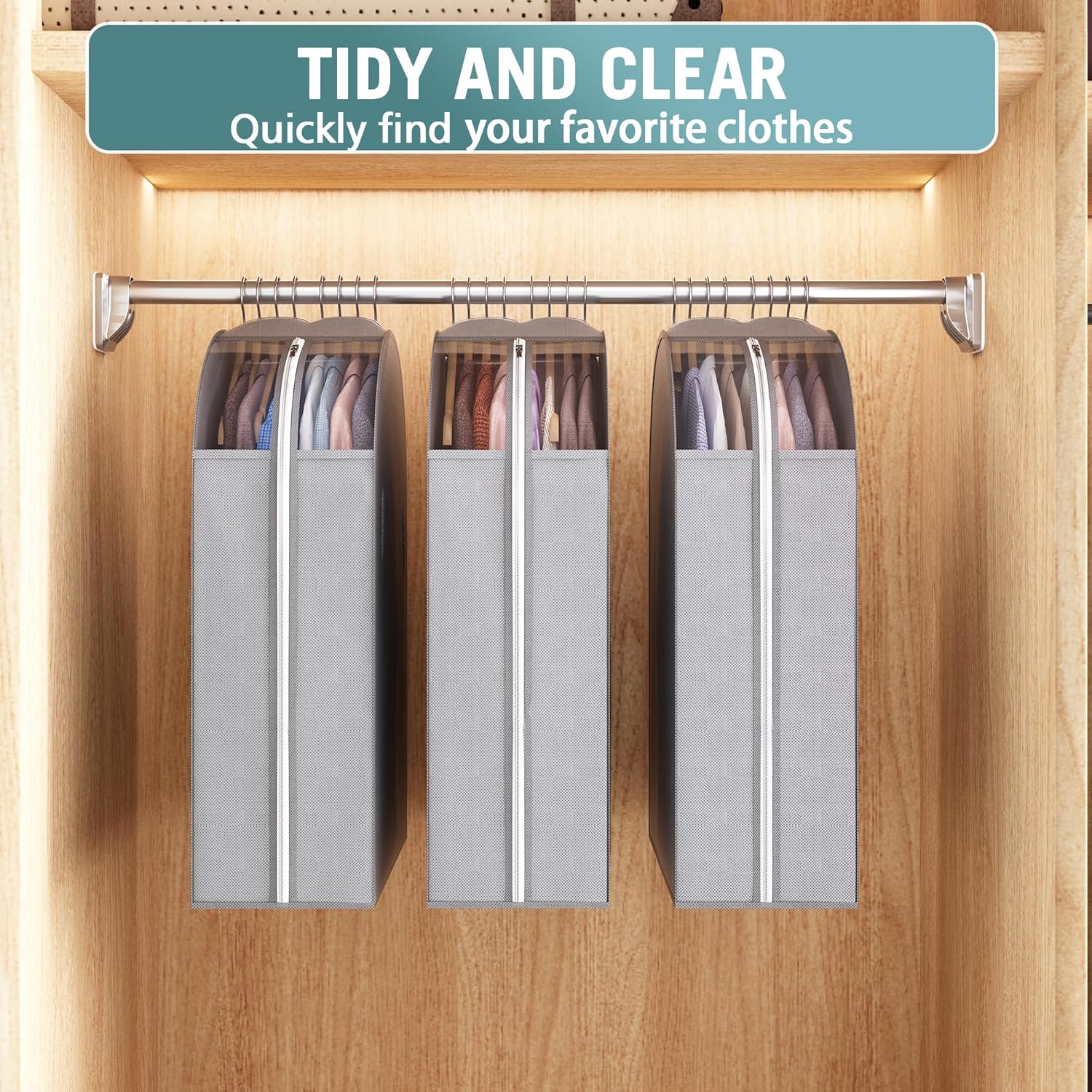 - Breathable Fabric with Clear Window: Liuoud garment bags made of no-woven fabric with clear widow, which is breathable,odorless and durable. The clear window that helps you see what's in each garment bag, you can easily find the clothes you look for