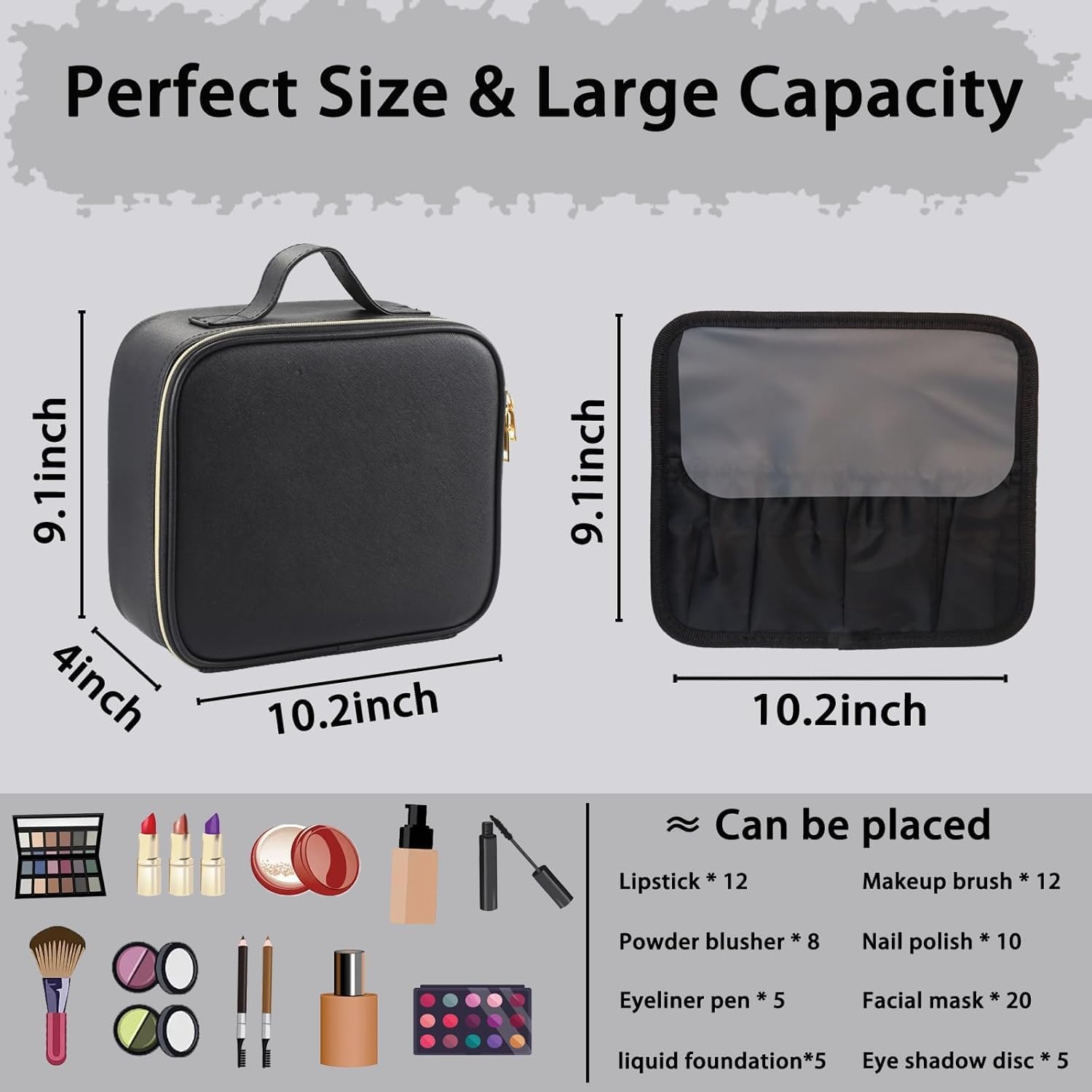 - 【walking powder room】the makeup bag with mirror is 10.3"x 9.1"x 4" and can hold most sizes and shapes of beauty makeup accessories, and the assembleable compartments are flexible enough to hold different sizes