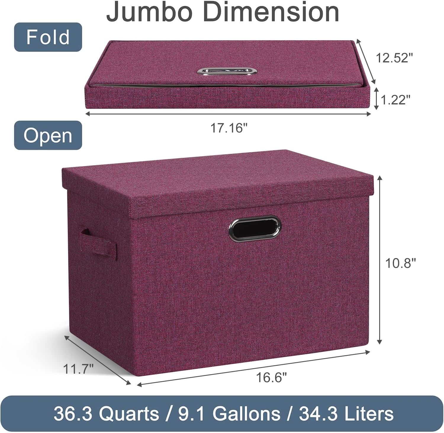 Large 17" 36 Quart Collapsible Stackable Storage Bins with Lids, 3 Packs Purple Linen Fabric Closet Boxes with Lids, Storage Cube Baskets Container Organizers for Bedroom Office (17x12x11)