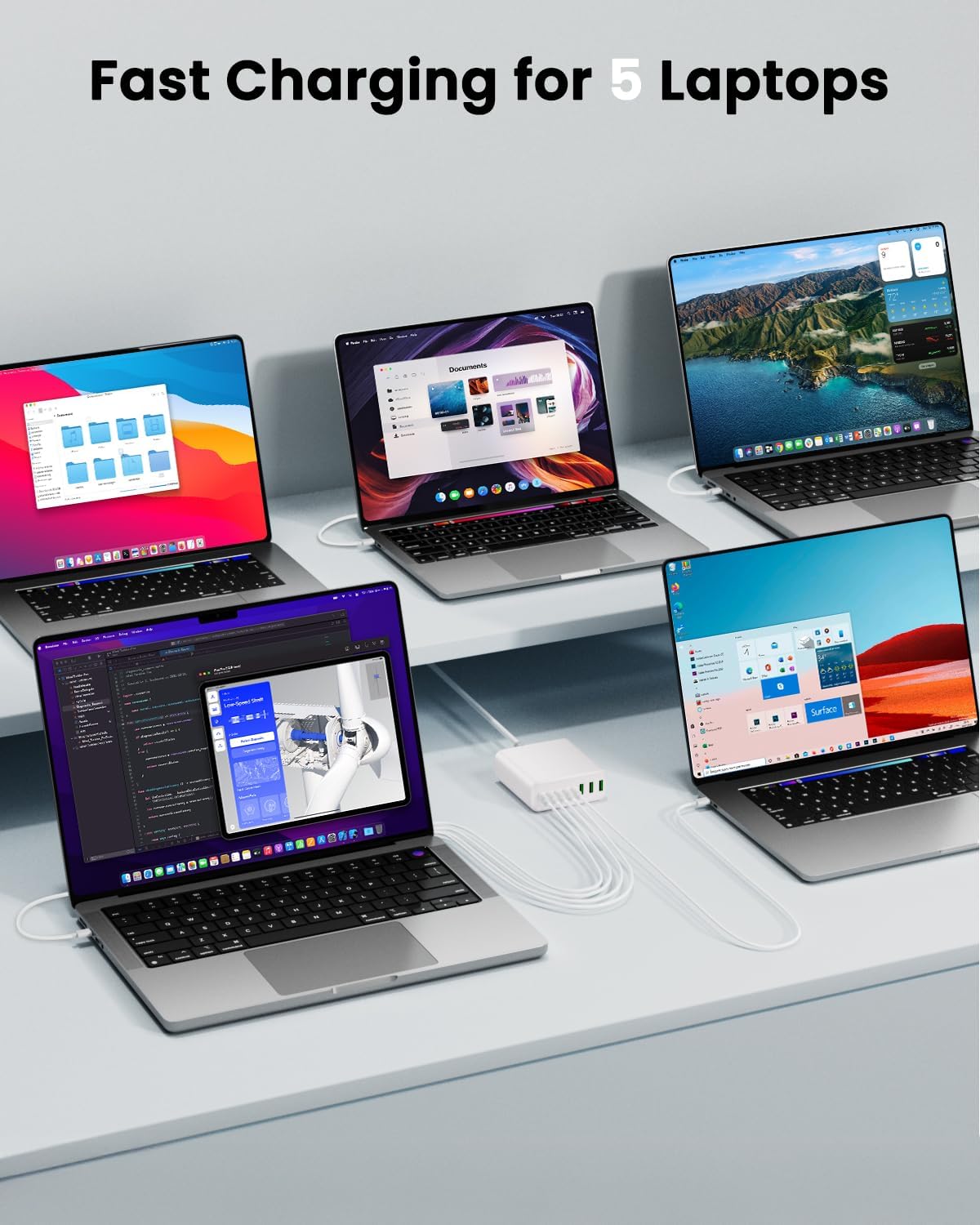 - 【Super Fast 500W Output USB C Charger】: Experience the convenience of super fast and ultra-high output charging with this 500W desktop charger, featuring 5 USB-C and 3 USB-A ports to power up your essentials simultaneously. No need for more adapters, you can use just one outlet to plug in laptops, tablets, smartphones, Bluetooth speakers and other small gadgets like earbuds, smartwatches, game consoles etc.