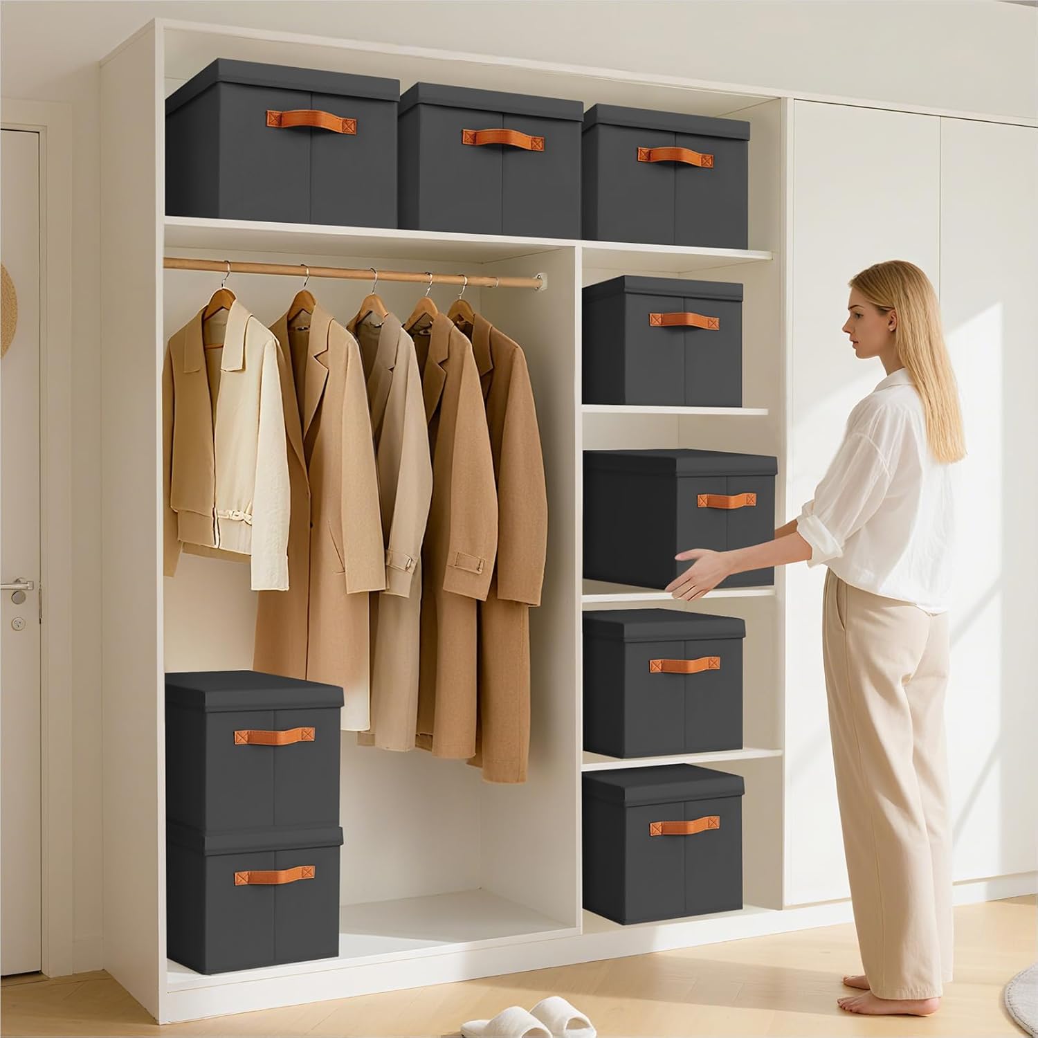 - [Easy Access & Portability] These closet storage bins feature an easy-access, removable lid that allows you to quickly grab what you need. Additionally, the fabric bins' handles make carrying items a breeze