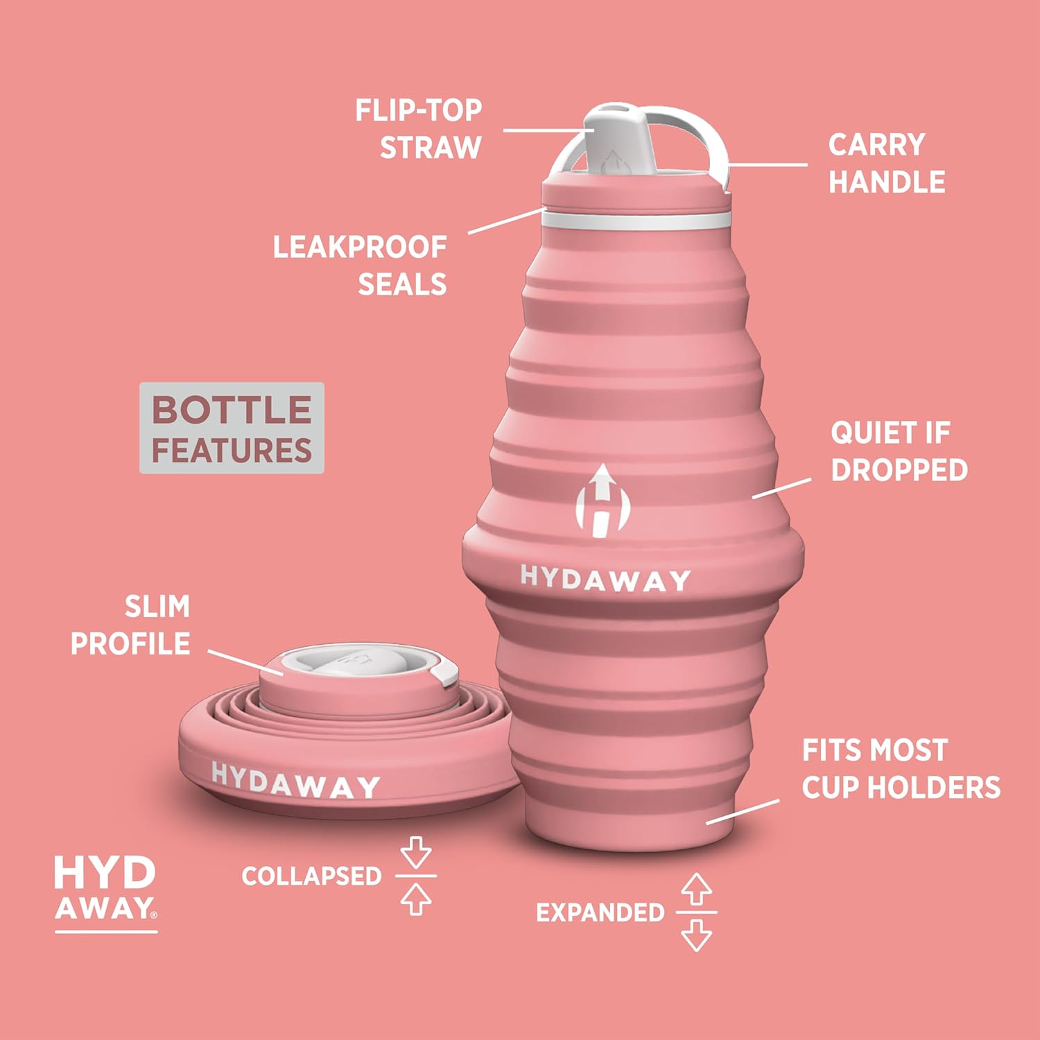 HYDAWAY 25oz Collapsible Water Bottle - BPA-Free, Leakproof, Lightweight, and Space-Saving - Perfect for Hiking, Travel, and All-Day Hydration