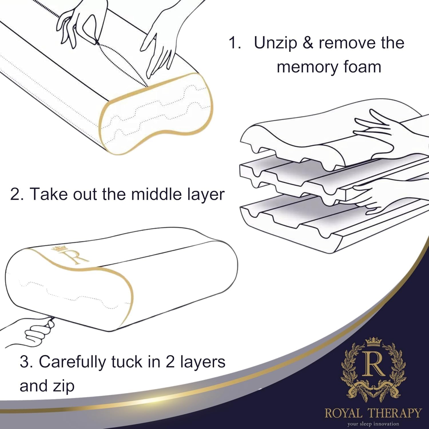 - πππ§π¦ π§π’ π¬π’π¨βππππ¨π¦π§ππππ πππ¬ππ₯π¦ ππ’π₯ ππ¨π¦π§π’π π¦π¨π£π£π’π₯π§ Royal Therapyβs king-size memory foam pillow is designed to adapt to your bodyβnot the other way around. Its three-layer construction lets you customize height and firmness, creating a perfect match whether youβre a side sleeper, back sleeper, or stomach sleeper. Ideal for anyone searching for an adjustable pillow that actually works with your posture, not against it.