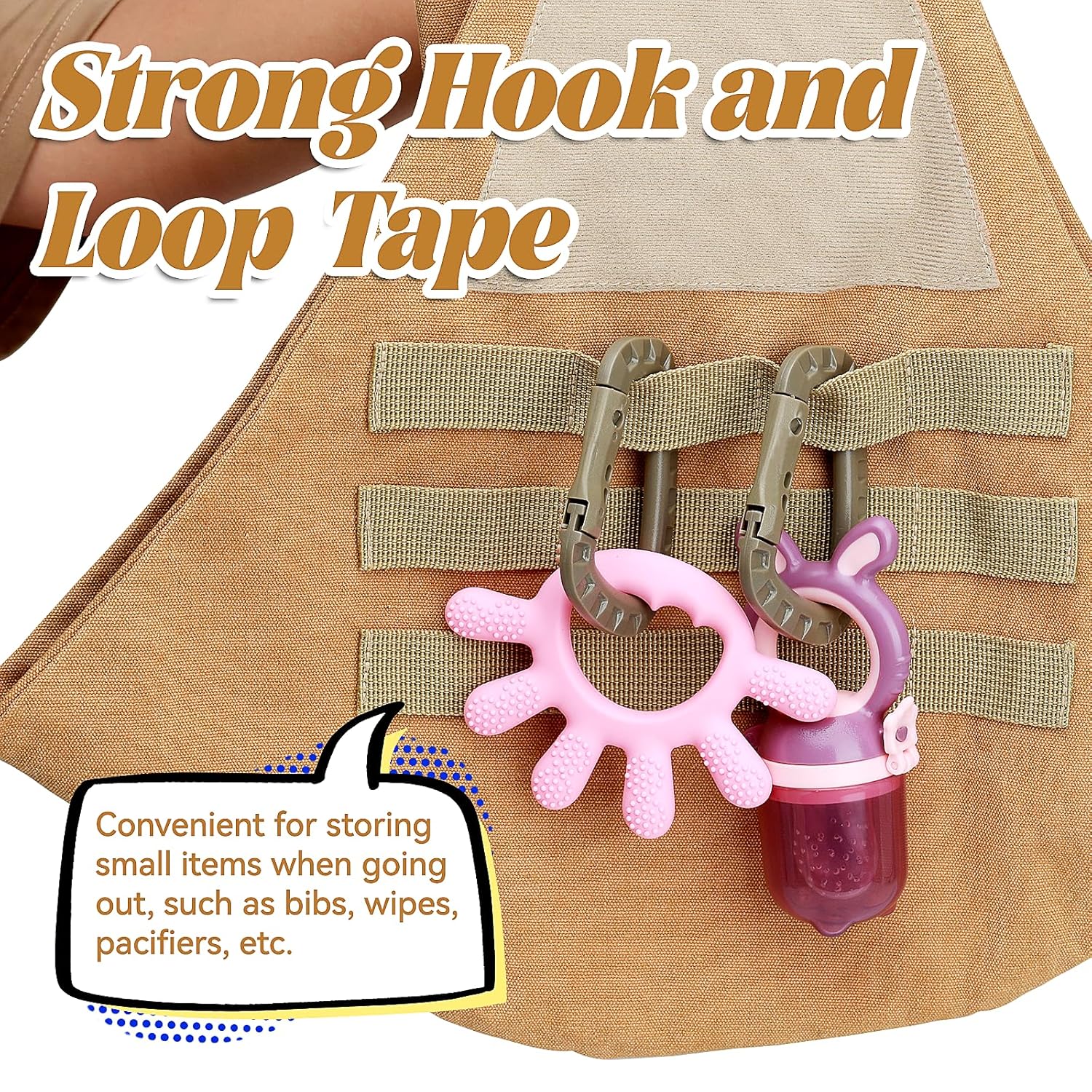 - STYLISH & PRACTICAL β Attach your favorite patch to the hook and loop panel for personal style. The included carabiners keep essentials (bottles, pacifiers, bibs) within reachβno more digging through bags when needed.
