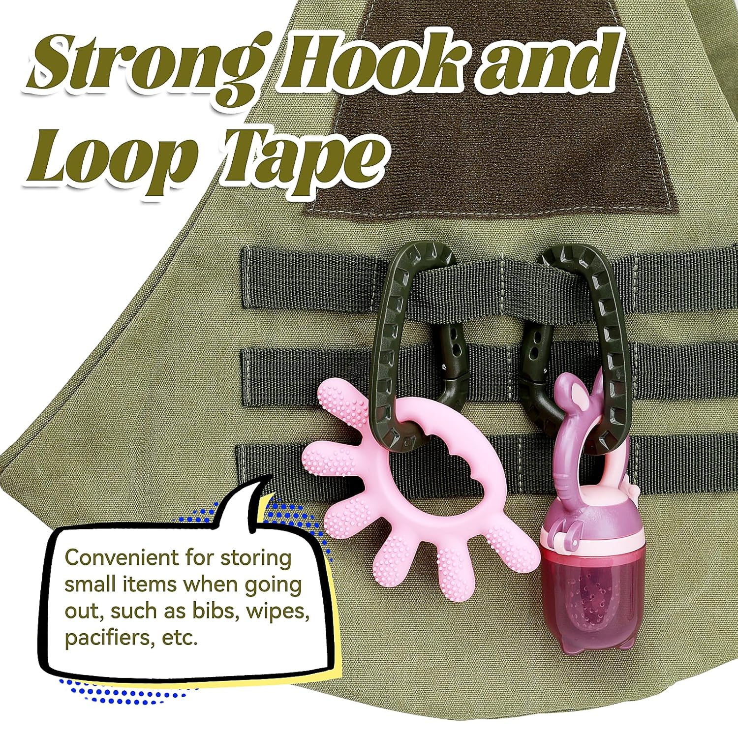 - STYLISH & PRACTICAL β Attach your favorite patch to the hook and loop panel for personal style. The included carabiners keep essentials (bottles, pacifiers, bibs) within reachβno more digging through bags when needed.