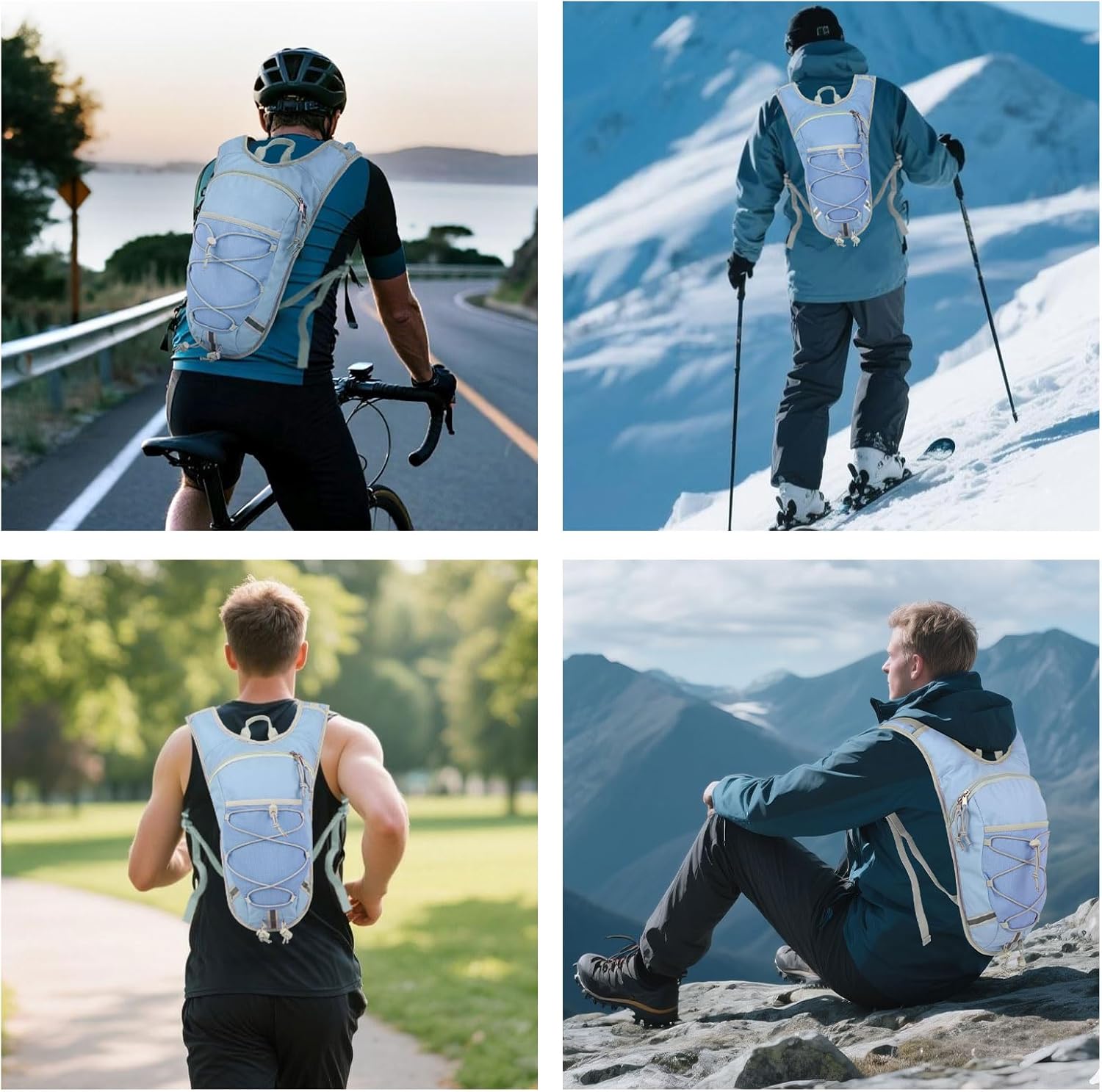 - 【Lightweight & Comfortable for Long Runs】 This 2L hydration backpack features a minimalist design with a main compartment for the water bladder, offering a lightweight fit that reduces strain during running, cycling, hiking, and outdoor workouts