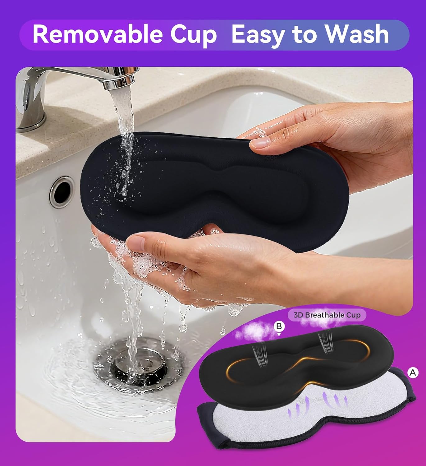 - Removeable - Easy to Wash: the sleep eye mask adpots Split Design. Eye Cover is connected by quite hook and loop, very easy to remove and wash, totally say goodbye to Troublesome disassembly