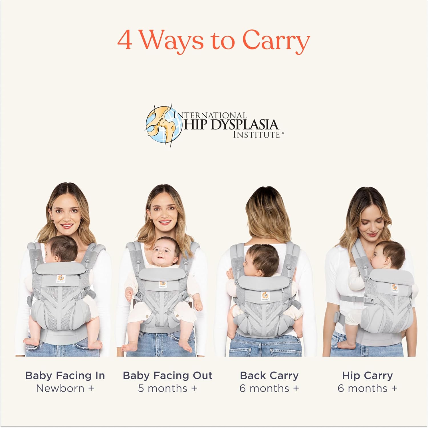 Ergobaby Omni Classic Baby Carrier Newborn to Toddler - Breathable Baby Carriers for Summer - All-Position Carrier with Lumbar Support (7-45 Pounds), Mesh, Charcoal Grey